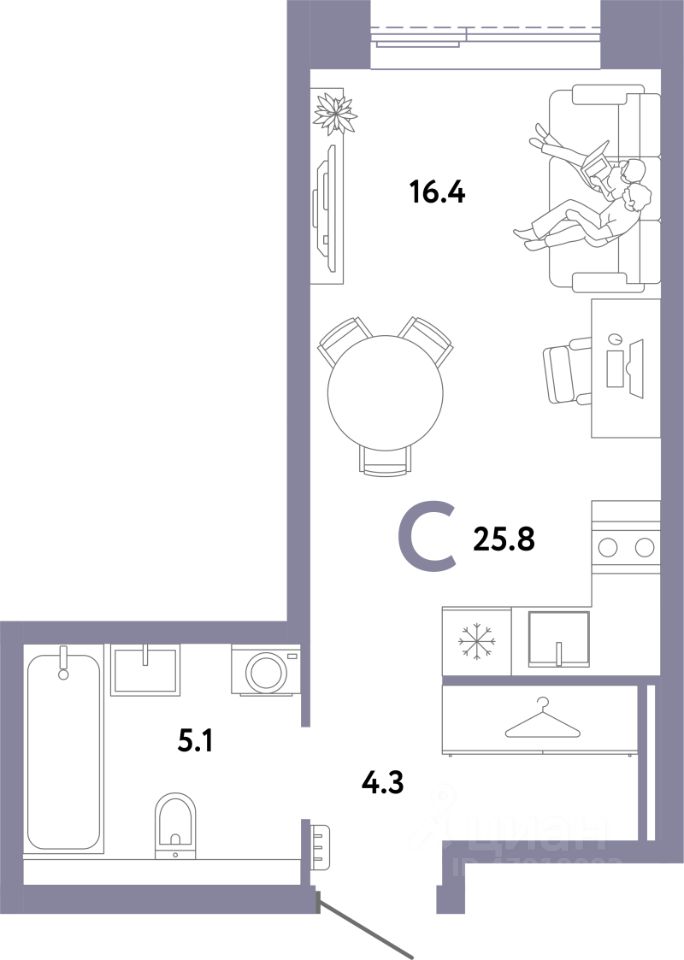 Общая площадь25,8 м2