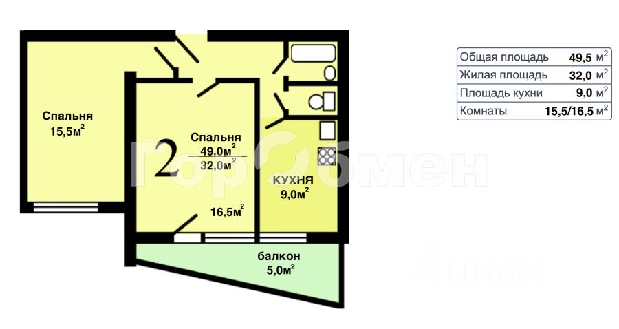 Двухкомнатная квартира с линейной планировкой, комнаты изолированные,все помещения на одну сторону света(окна во двор).из спальни выход на остекленный балкон.