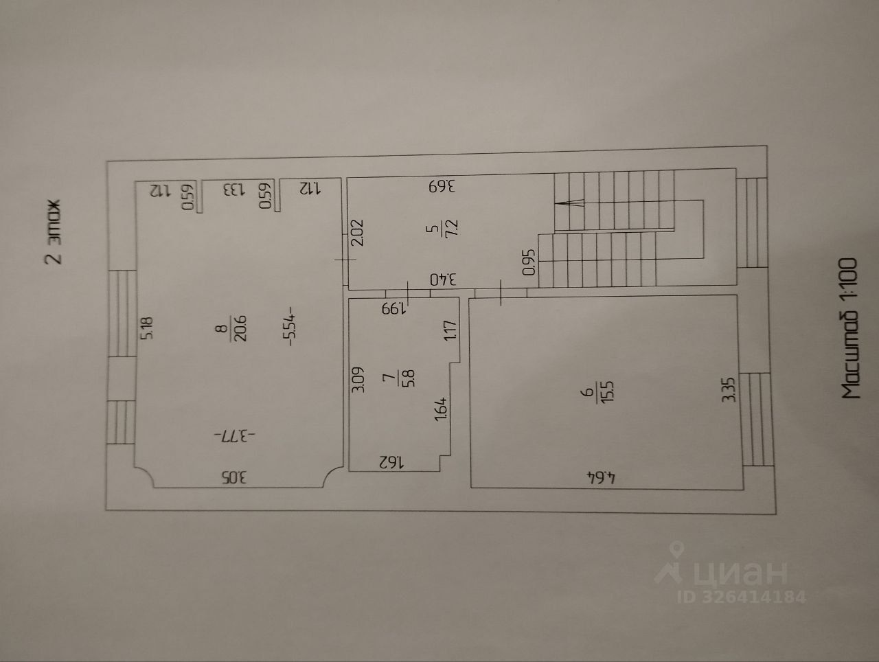 Второй этаж: 2 спальни (20,6 и 15,5 м2), санузел.