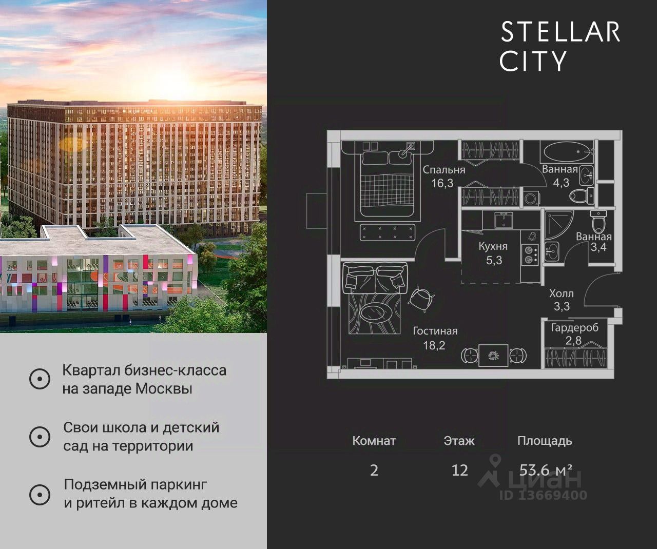 Продается квартира от надежного застройщика Tashir Estate в квартале бизнес-класса Stellar City в ЗАО Москвы.