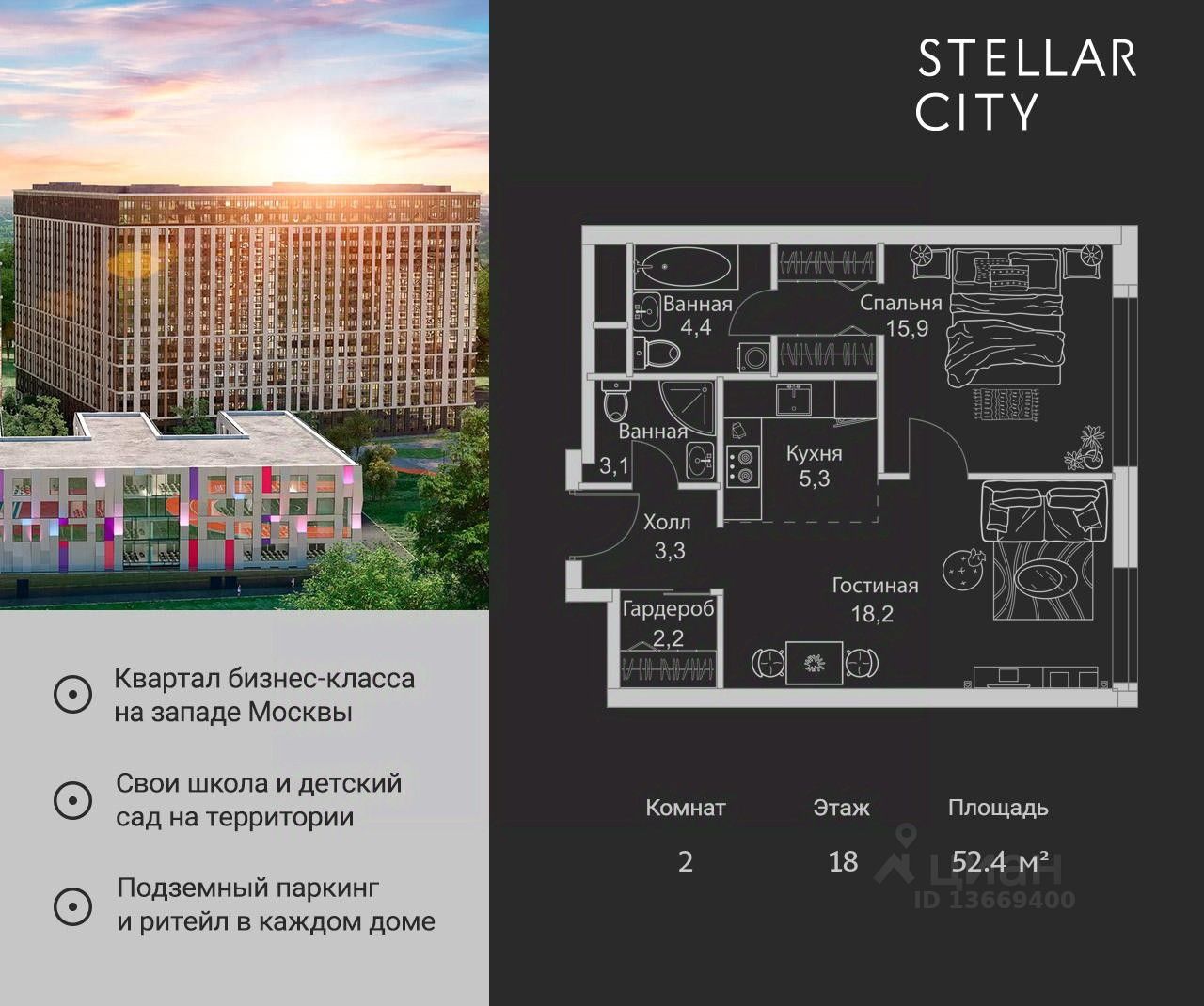 Продается квартира от надежного застройщика Tashir Estate в квартале бизнес-класса Stellar City в ЗАО Москвы.