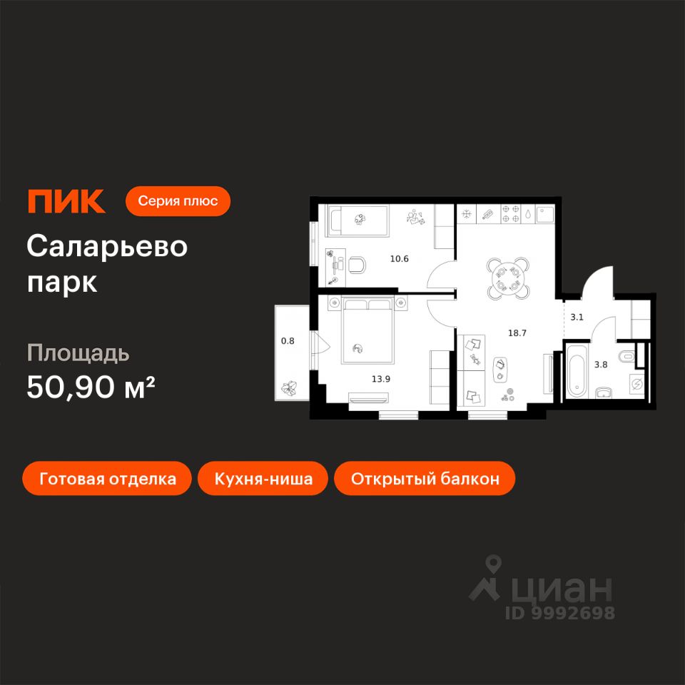 Общая площадь50,9 м2