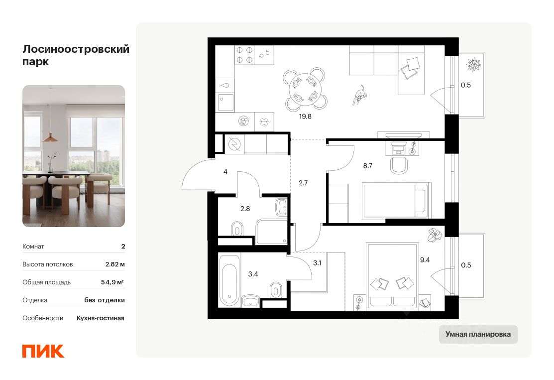 Продаётся 2-комн. квартира площадью 54,9 кв.м на 7 этаже 14 этажного дома (Корпус 2.3, Секция 1) проекта ПИК Лосиноостровский парк. Светлый просторный подъезд на уровне земли, функциональная планировка, большие окна, без отделки.