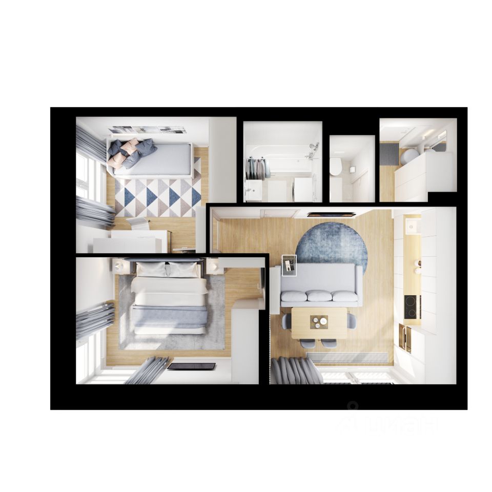 Продаётся 2-комн. квартира площадью 45,4 кв.м на 3 этаже 33 этажного дома (Корпус 2.7, Секция 3) проекта ПИК Руставели 14. Светлый просторный подъезд на уровне земли, функциональная планировка, большие окна, c отделкой.