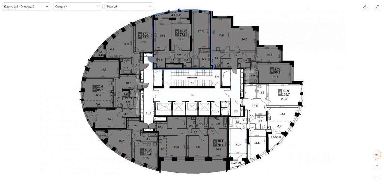 Арт. 129410773 Продаётся 2-комнатная квартира 77,1 м² в ЖК ''Sydney City'' (корпус 2.2, секция 4). Для клиентов Прайм Самолет Плюс, действует уникальное торговое предложение по приобретению данной квартиры в ипотеку, по ставке 13,9%. Дом сдан, началась выдача ключей — можно сразу приступать к ремонту. Квартира расположена на 28 этаже из 44, окна выходят в тихий двор на солнечную сторону. Удобная планировка: две комнаты 17,2 м² и 23,0 м², кухня-гостиная с лоджией 14,6 м² островного формата. Отделка White Box — идеальная база для индивидуального дизайна. ЖК бизнес-класса: подземный паркинг, лобби с премиальной отделкой, закрытая территория.