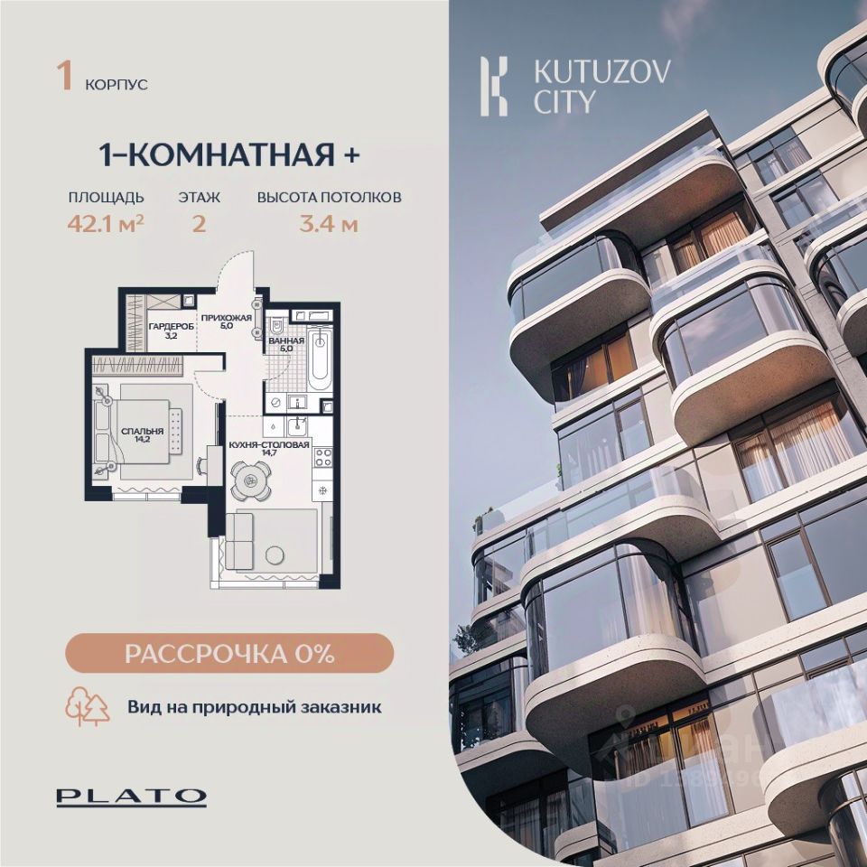 В двух шагах от дома находится одна из крупнейших природных территорий Москвы — природный заказник ''Долина реки Сетунь''. Камерная застройка и развитая инфраструктура делают ''Кутузов Сити'' отличным выбором для тех, кто ценит качество жизни и близость к природе. (Лот: 3)