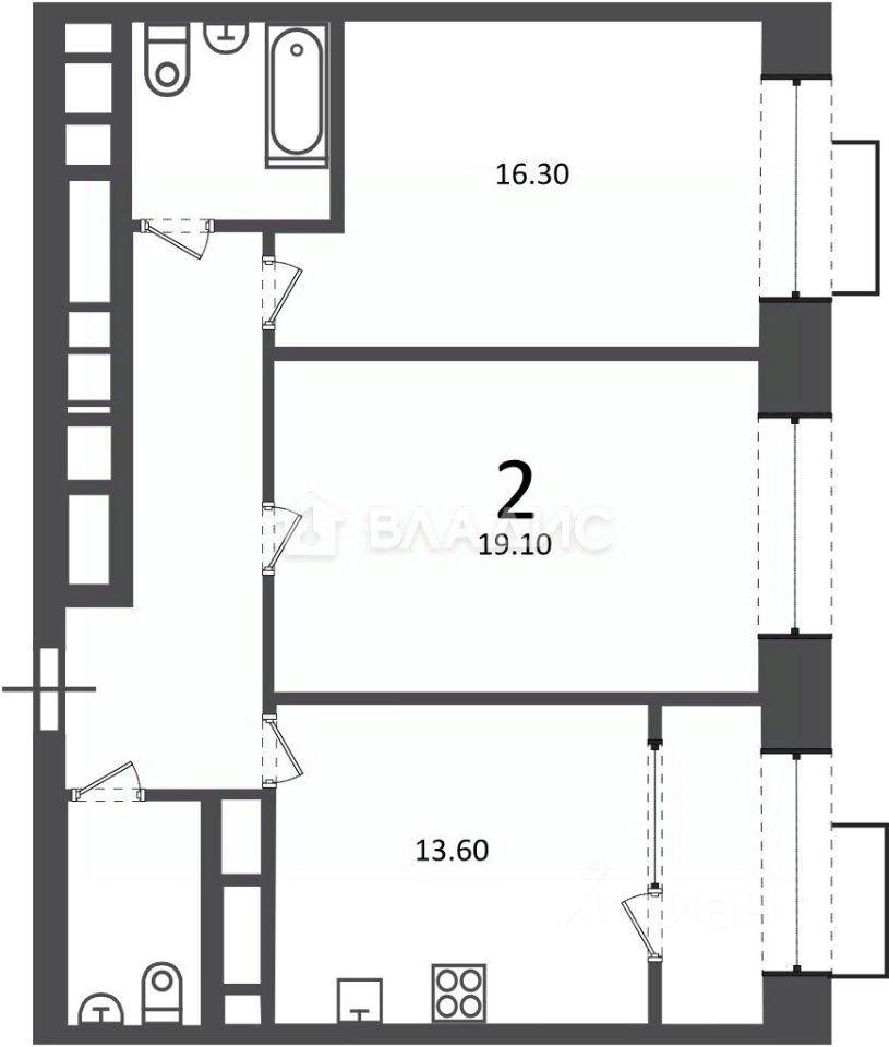 Площадь и планировка: общая площадь квартиры составляет 67,1 кв. м, из них 13,6 кв. м — кухня. Комнаты изолированы, высота потолков — 2,7 м. Такая планировка идеально подойдёт как для молодых специалистов, так и для семей с детьми.