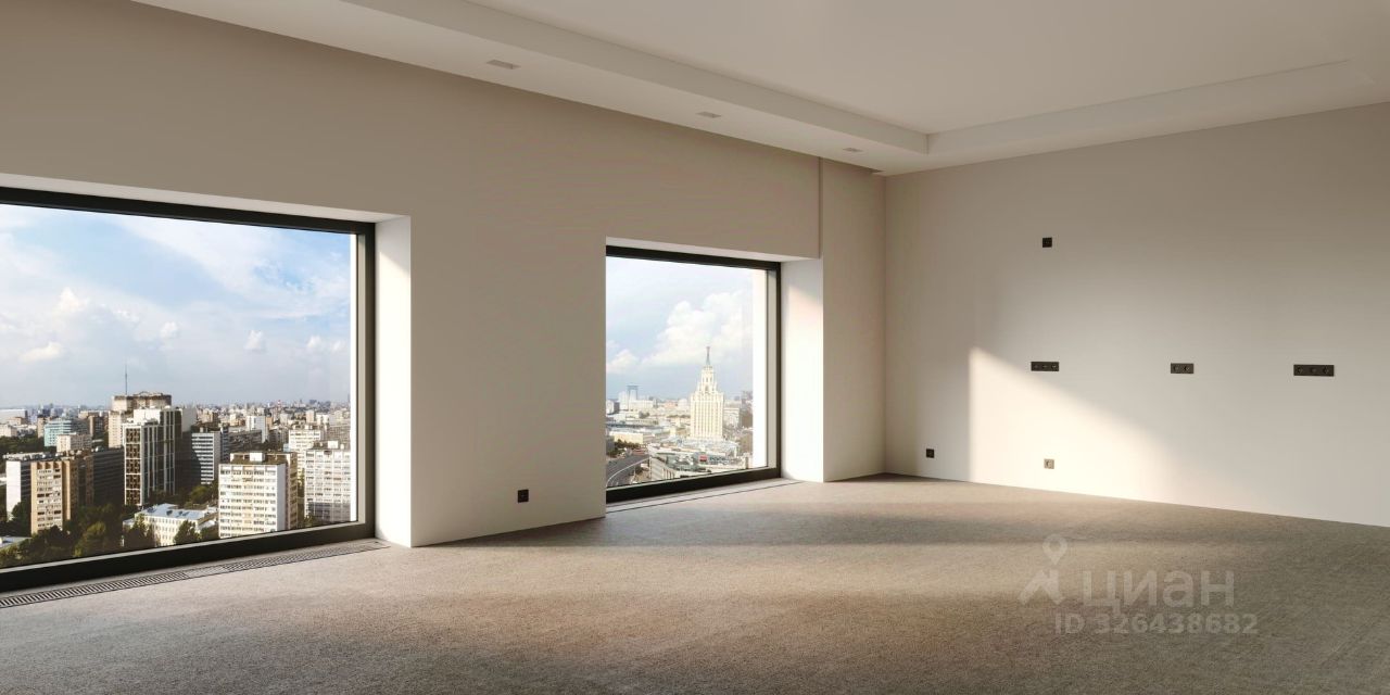 В апартаментах установлены полноразмерные панорамные окна в пол с шумоизоляцией от бельгийской компании Reynaers высотой до 4,5 метров.