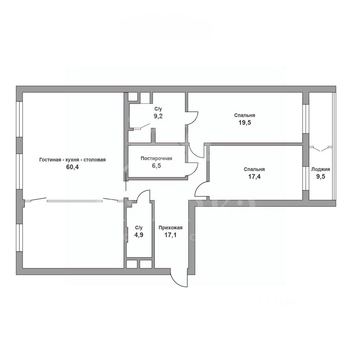 Планировка: холл, кухня-гостиная-столовая (60,4 кв.м), мастер-спальня с ванной комнатой и выходом на лоджию, вторая спальня с выходом на лоджию, ванная комната, хозяйственная комната с зоной постирочной.