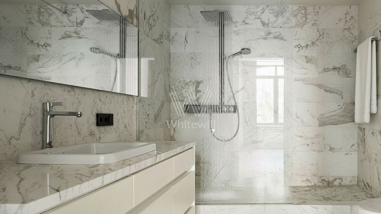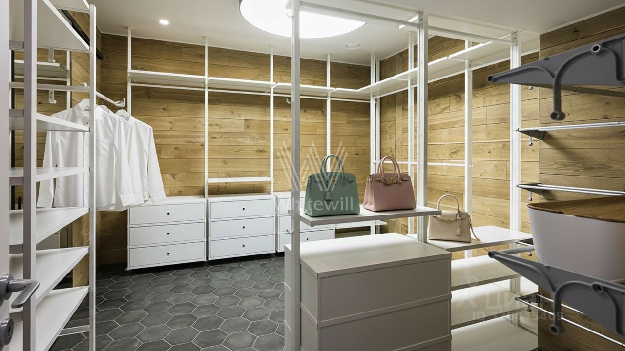 Цокольный этаж: мастер-спальня с просторной гардеробной 15 м² и санузлом, гостевая спальня с санузлом, кладовая, постирочная. 1 этаж: гостиная-кухня-столовая в едином пространстве, биокамин с живым огнём, хаммам с подсветкой, гостевой санузел, кладовая. Установлена приточная вытяжная система вентиляции. Машиноместо в механизированном паркинге.