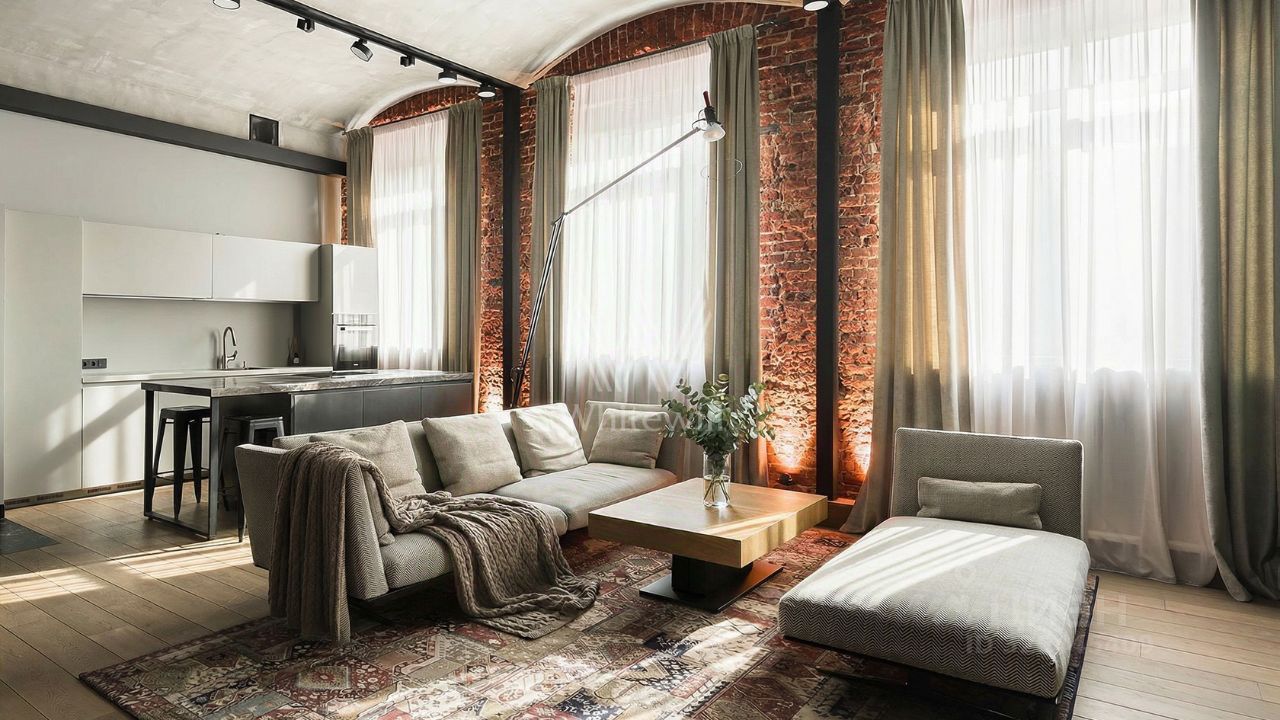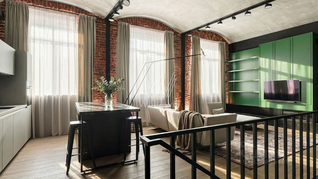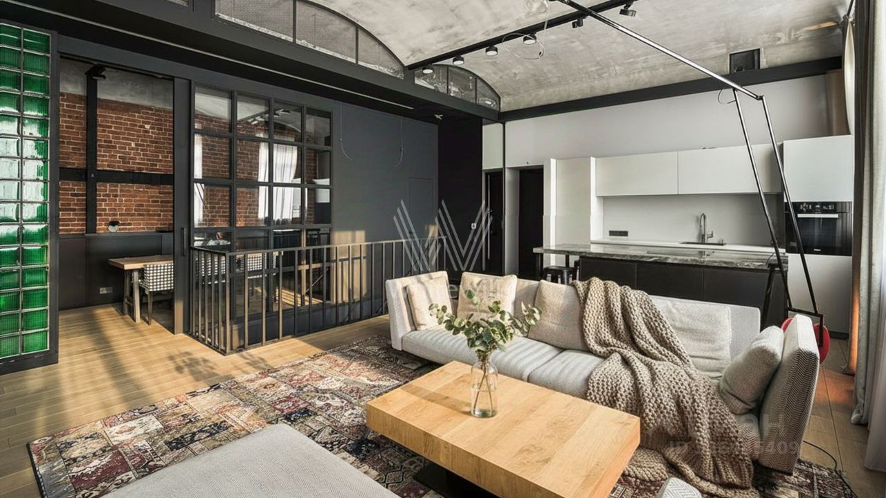 Двухуровневые апартаменты с патио в премиальном клубном комплексе ''Кадашевские Палаты'' в центре Москвы. Дизайн интерьера в стиле лофт со сводчатыми потолками. В отделке использовано мореное дерево, натуральный камень, мраморные столешницы, старинный кирпич с клеймами ручной формовки. Возможно использовать как офис.