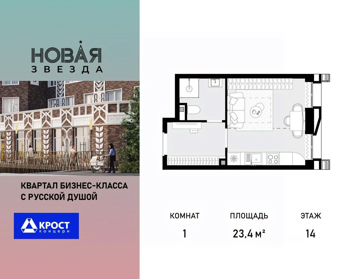 Продаётся 1-к квартира 23.4 кв.м. на 14-м этаже 21 этажного дома, корпус 1 - Резиденция ''Вологда''. Без отделки. Легендарный квартал ''Новая звезда'' продолжается II очередью, которая спроектирована как мультифункциональный кластер. ЖК ''Новая Звезда'' расположен на территории Новой Москвы, в 10 мин. от м. Теплый стан и в 9 мин. пешком от строящейся станции метро ''Бачуринская''.