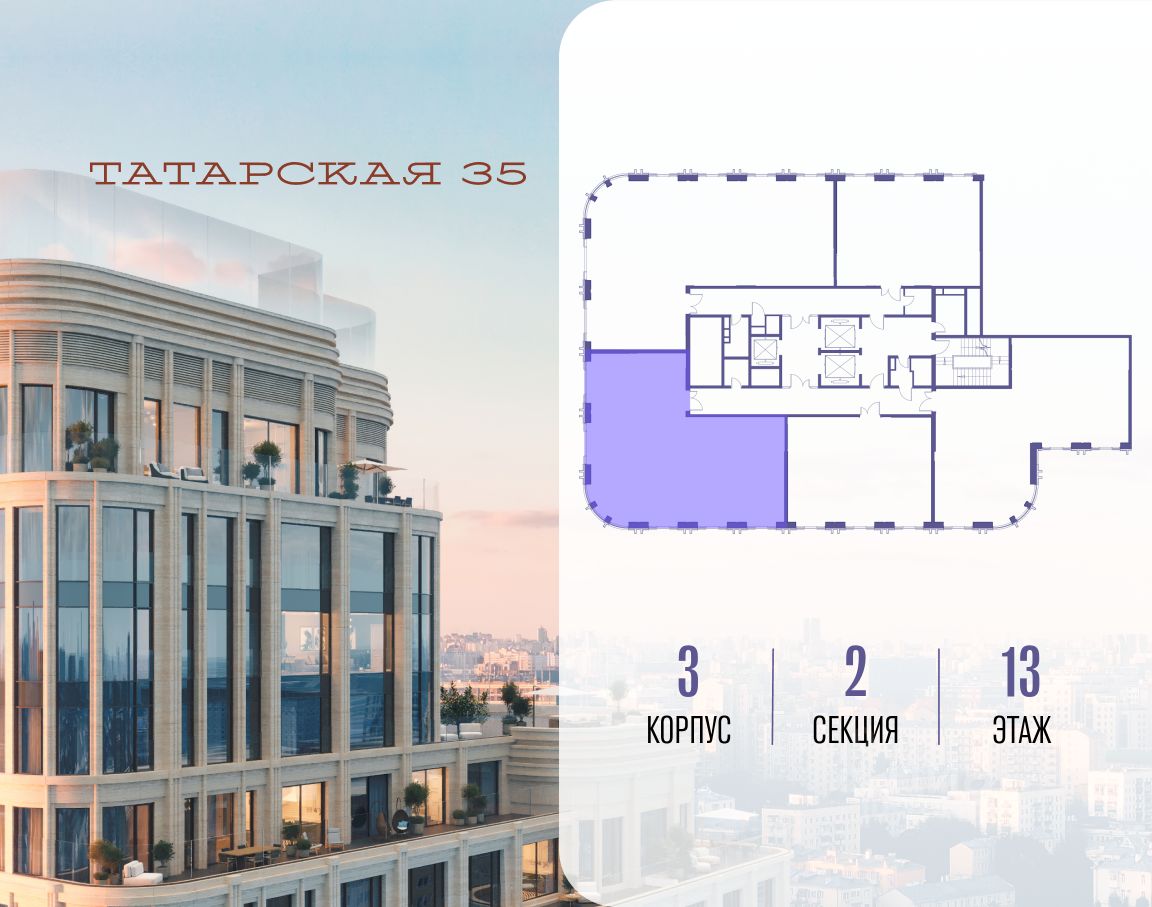 ТАТАРСКАЯ, 35 - новая архитектурная доминанта Замоскворечья, достопримечательность на фотопанорамах исторического центра Москвы. Элитный дом, созданный для тех, кто умеет смотреть далеко вперед, мыслить масштабно и воплощать собственный сценарий жизни.