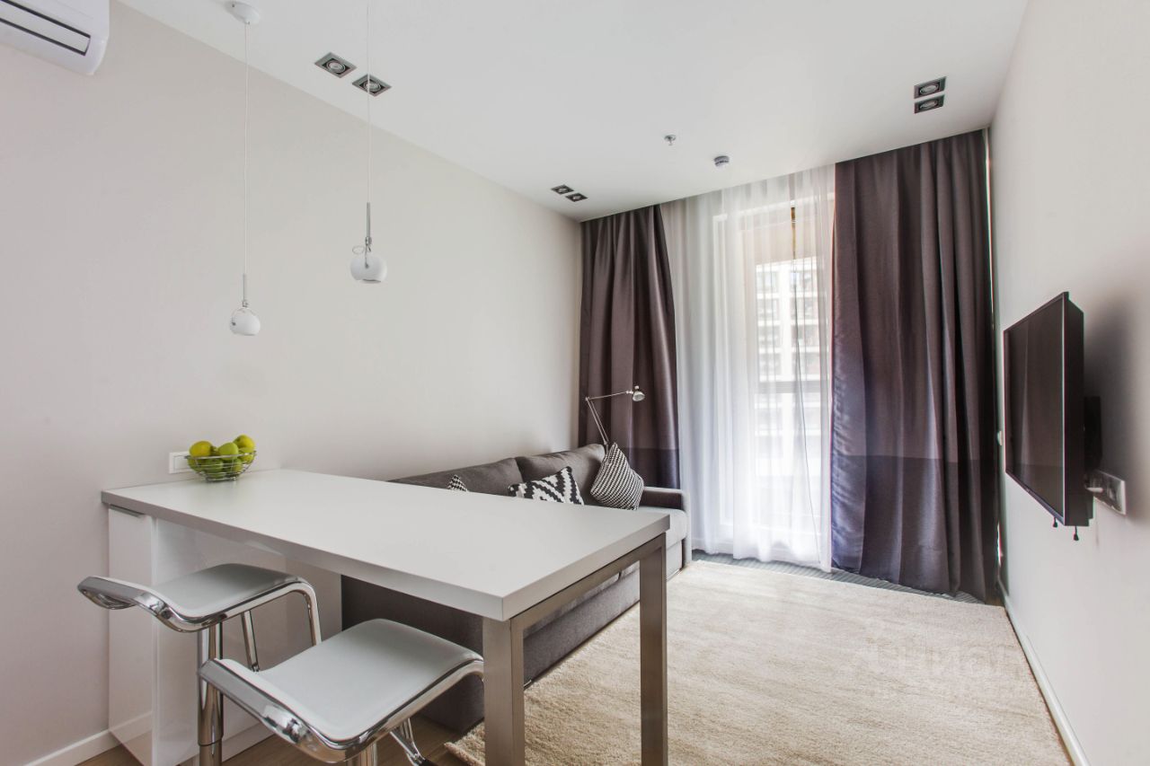 Студия с современным дизайном, качественной отделкой, мебелью и техникой для жизни от ведущих брендов: - встраиваемая бытовая техника, - посудомоечная и стиральная машины, - электрическая варочная панель на 2 конфорки, - холодильник, - кондиционер, - плазменный телевизор.