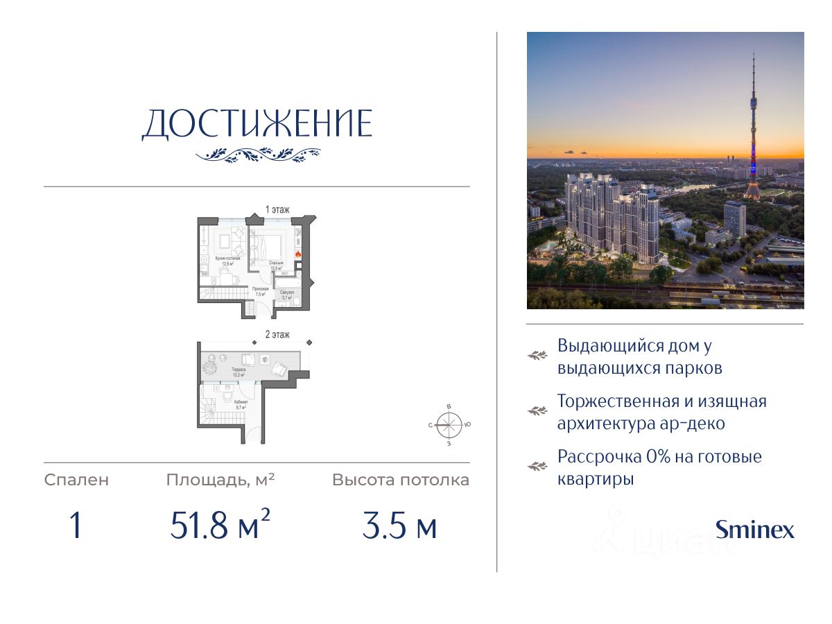 ''Достижение'' - единственный дом с торжественной архитектурой в окружении бескрайних парков на любой вкус: парк ''Дубовая роща'', обновленный классический парк ''Останкино'', самый известный парк России ВДНХ и крупнейший в Европе ботанический сад.