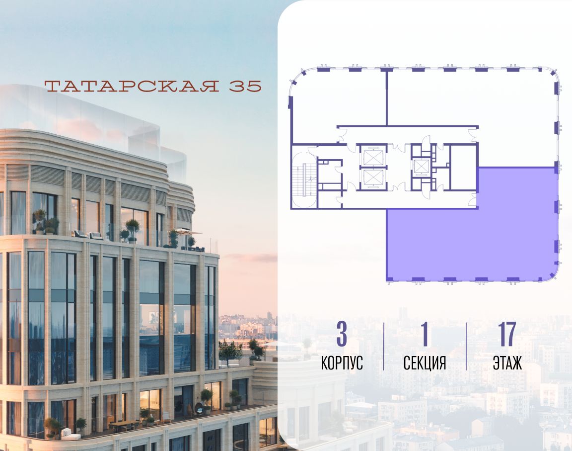 ТАТАРСКАЯ, 35 - новая архитектурная доминанта Замоскворечья, достопримечательность на фотопанорамах исторического центра Москвы. Элитный дом, созданный для тех, кто умеет смотреть далеко вперед, мыслить масштабно и воплощать собственный сценарий жизни.