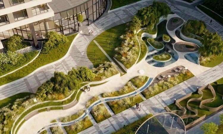 Закрытый двор без машин обеспечен круглосуточной охраной и системами контроля доступа. Двор создан как ландшафтное продолжение окружающих природных парков и зонирован для различных видов отдыха, детских игр, занятий спортом. Работает шоурум.