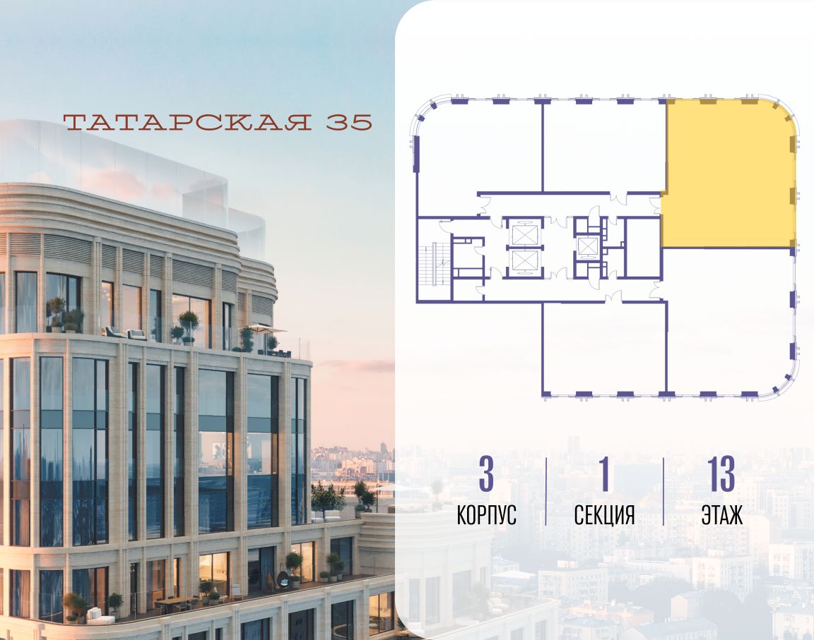 ТАТАРСКАЯ, 35 - новая архитектурная доминанта Замоскворечья, достопримечательность на фотопанорамах исторического центра Москвы. Элитный дом, созданный для тех, кто умеет смотреть далеко вперед, мыслить масштабно и воплощать собственный сценарий жизни.