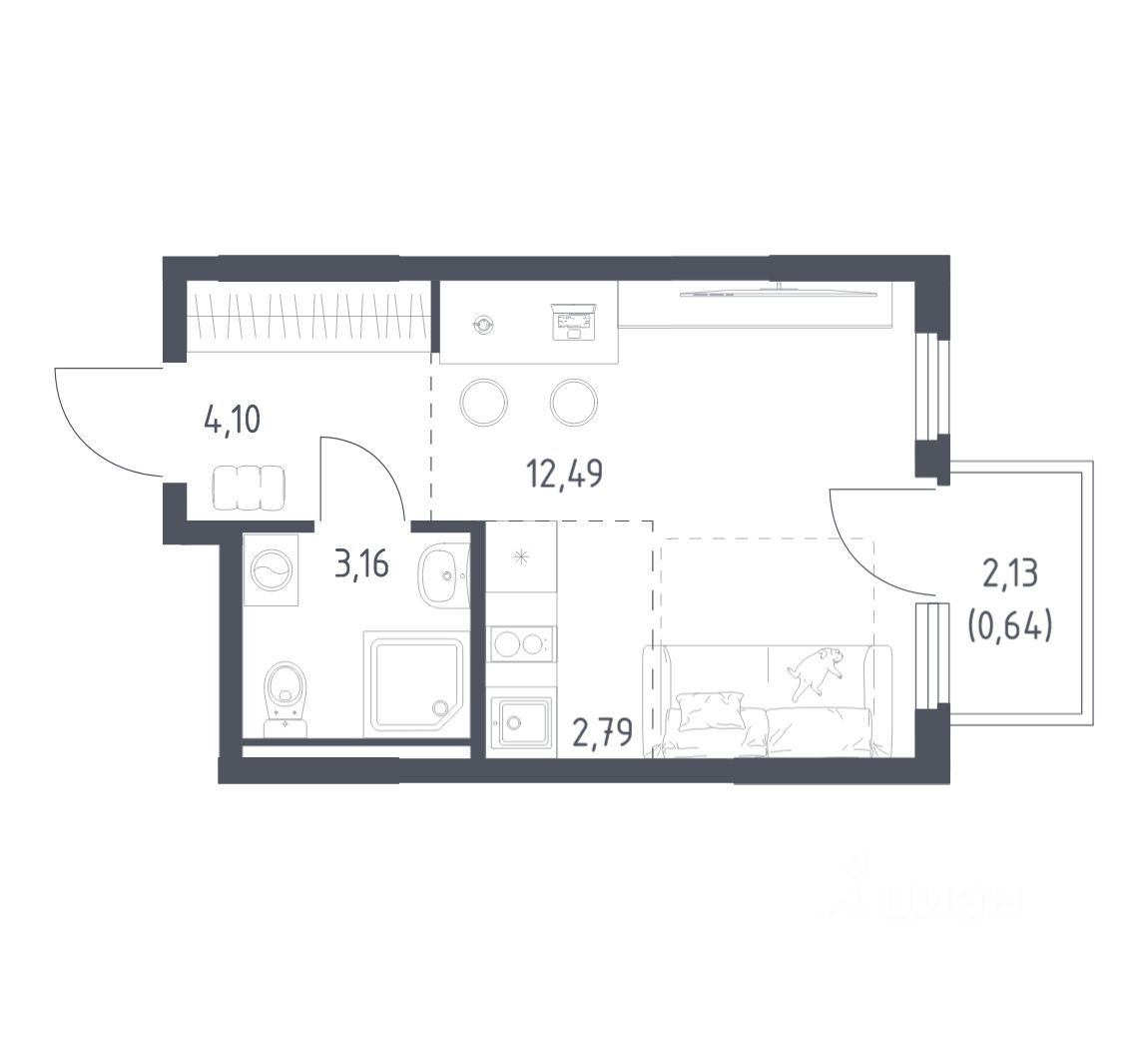 Общая площадь23,18 м2