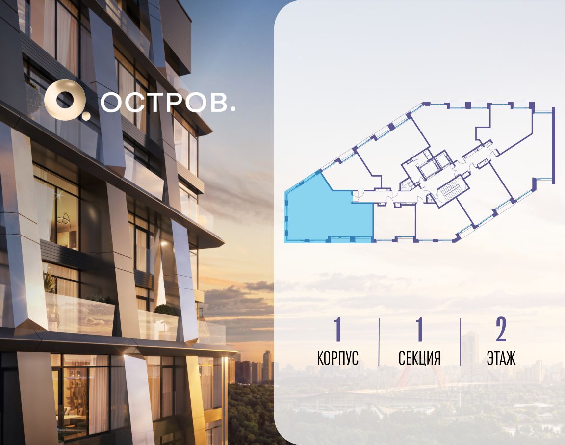ОСТРОВ.12.1 - часть жилого комплекса на западе Москвы, в 15 минутах езды от центра. Это настоящий заповедник посреди большого города, в окружении реки и 650 га заповедников. Здесь все необходимое находится по соседству: от детского сада до супермаркета, от фитнес-зала до серфинг-центра. На территории созданы все условия для отдыха и общения: клубная инфраструктура в домах и дворы-парки, набережные и променады, маршруты для спортсменов, детей и возрастных жителей. В нескольких минутах ходьбы расположена станция метро ''Мнёвники'' БКЛ. На автомобиле - 10 минут до Москва-Сити и 15 минут до Садового кольца.