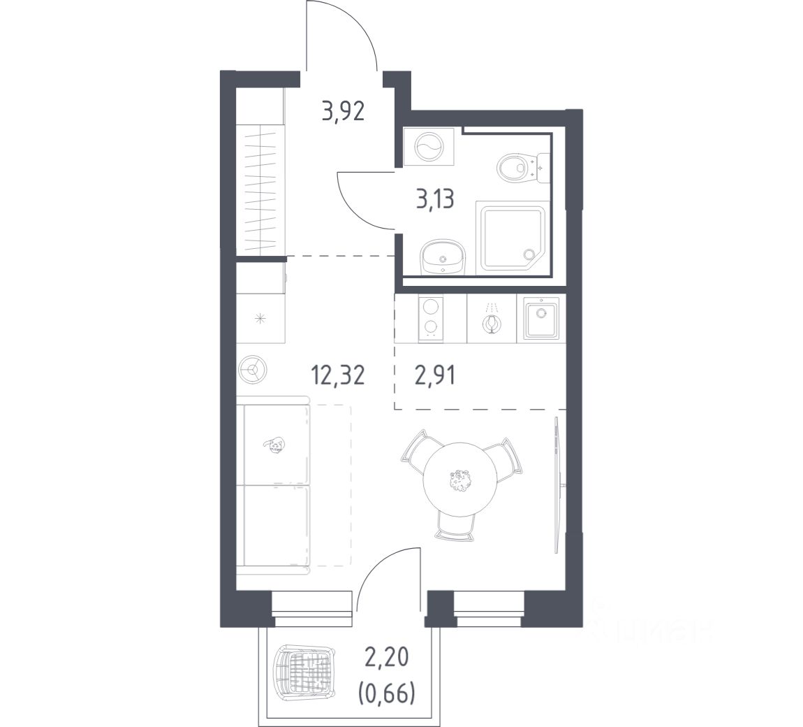 Общая площадь22,94 м2