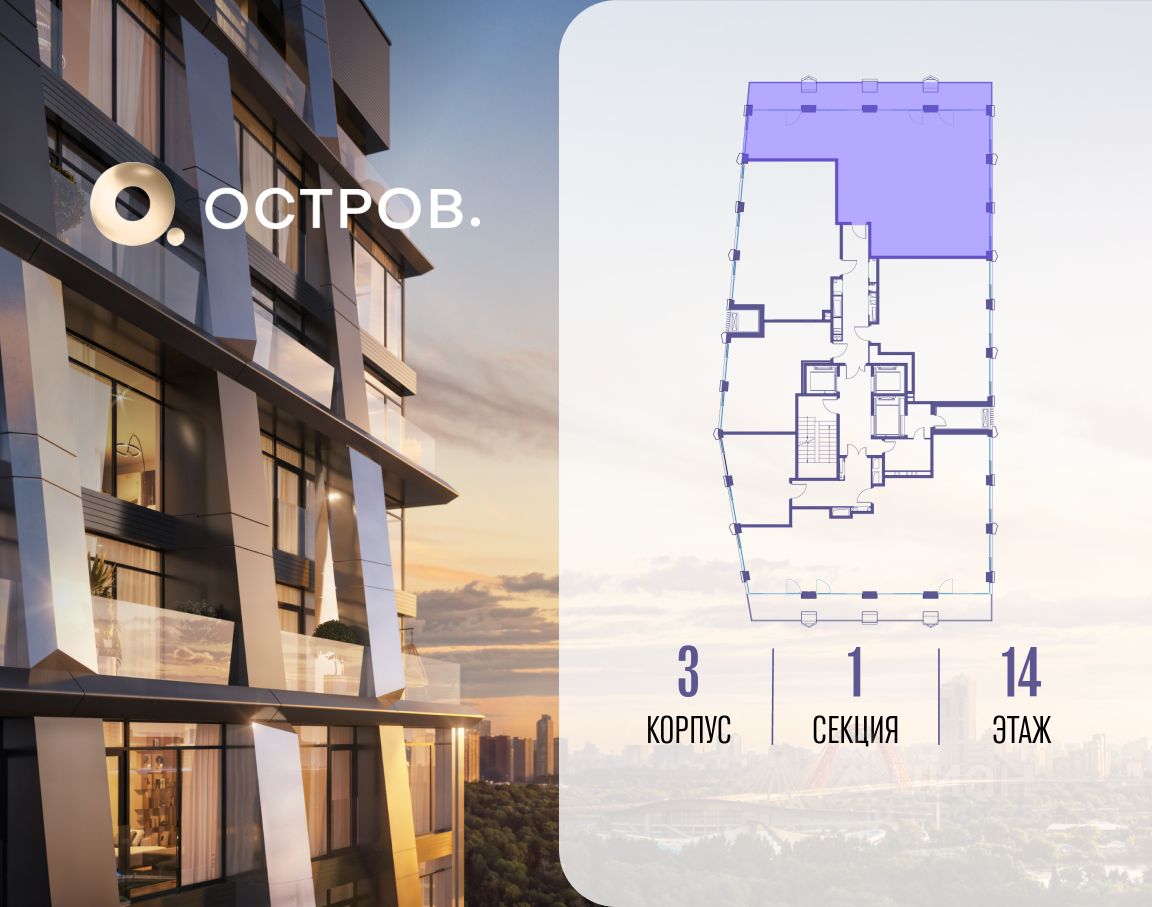ОСТРОВ.12.1 - часть жилого комплекса на западе Москвы, в 15 минутах езды от центра. Это настоящий заповедник посреди большого города, в окружении реки и 650 га заповедников. Здесь все необходимое находится по соседству: от детского сада до супермаркета, от фитнес-зала до серфинг-центра. На территории созданы все условия для отдыха и общения: клубная инфраструктура в домах и дворы-парки, набережные и променады, маршруты для спортсменов, детей и возрастных жителей. В нескольких минутах ходьбы расположена станция метро ''Мнёвники'' БКЛ. На автомобиле - 10 минут до Москва-Сити и 15 минут до Садового кольца.