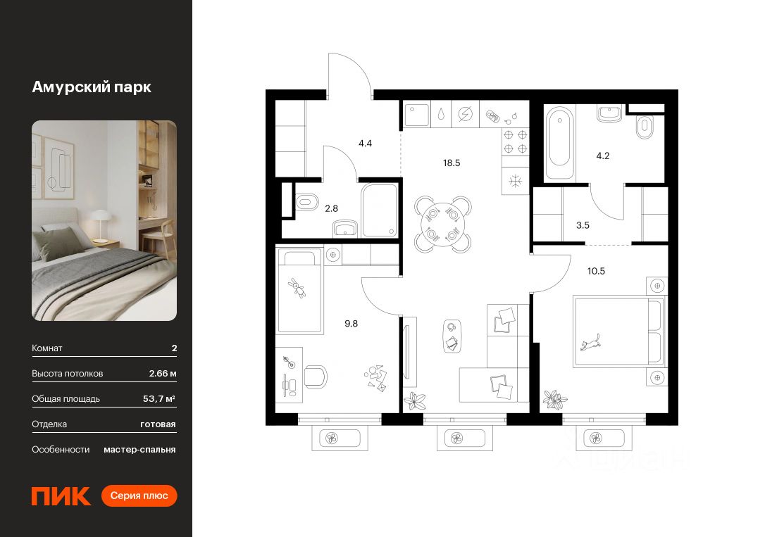 продам 2-к, Амурский парк ЖК, 4.321 415 560 ₽