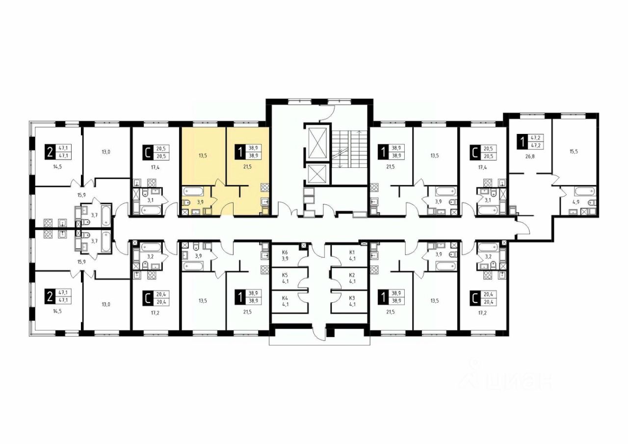 Продаётся 1-комнатная квартира в строящемся доме (Корпус 6), срок сдачи: 2-кв. 2026, общей площадью 38.90 кв.м., на 11 этаже.
