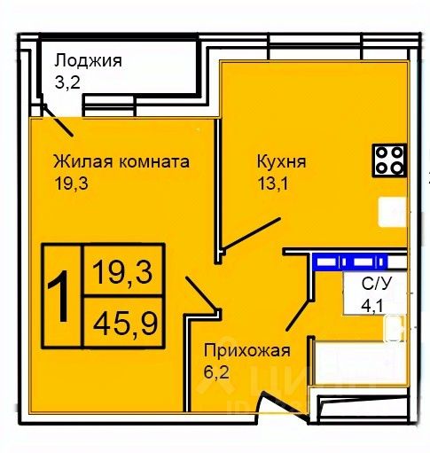 Общая площадь45,9 м2