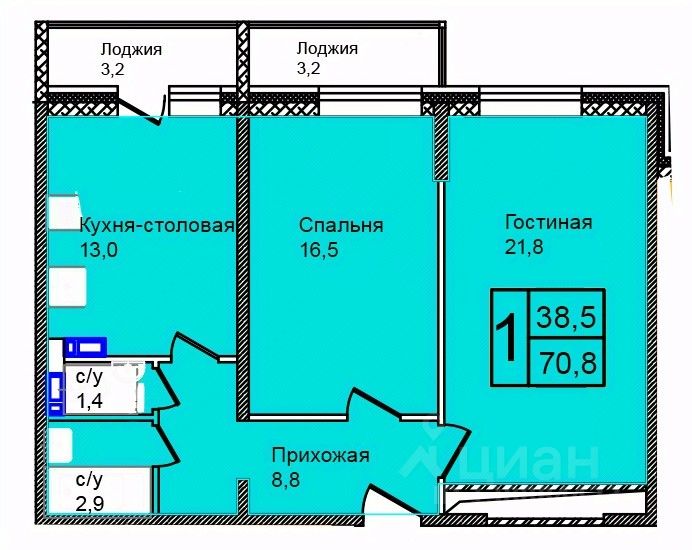 Общая площадь70,8 м2