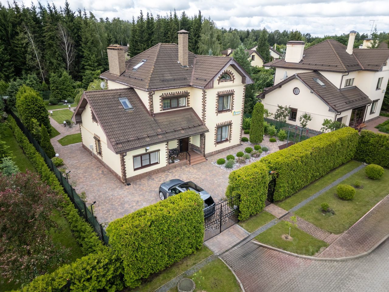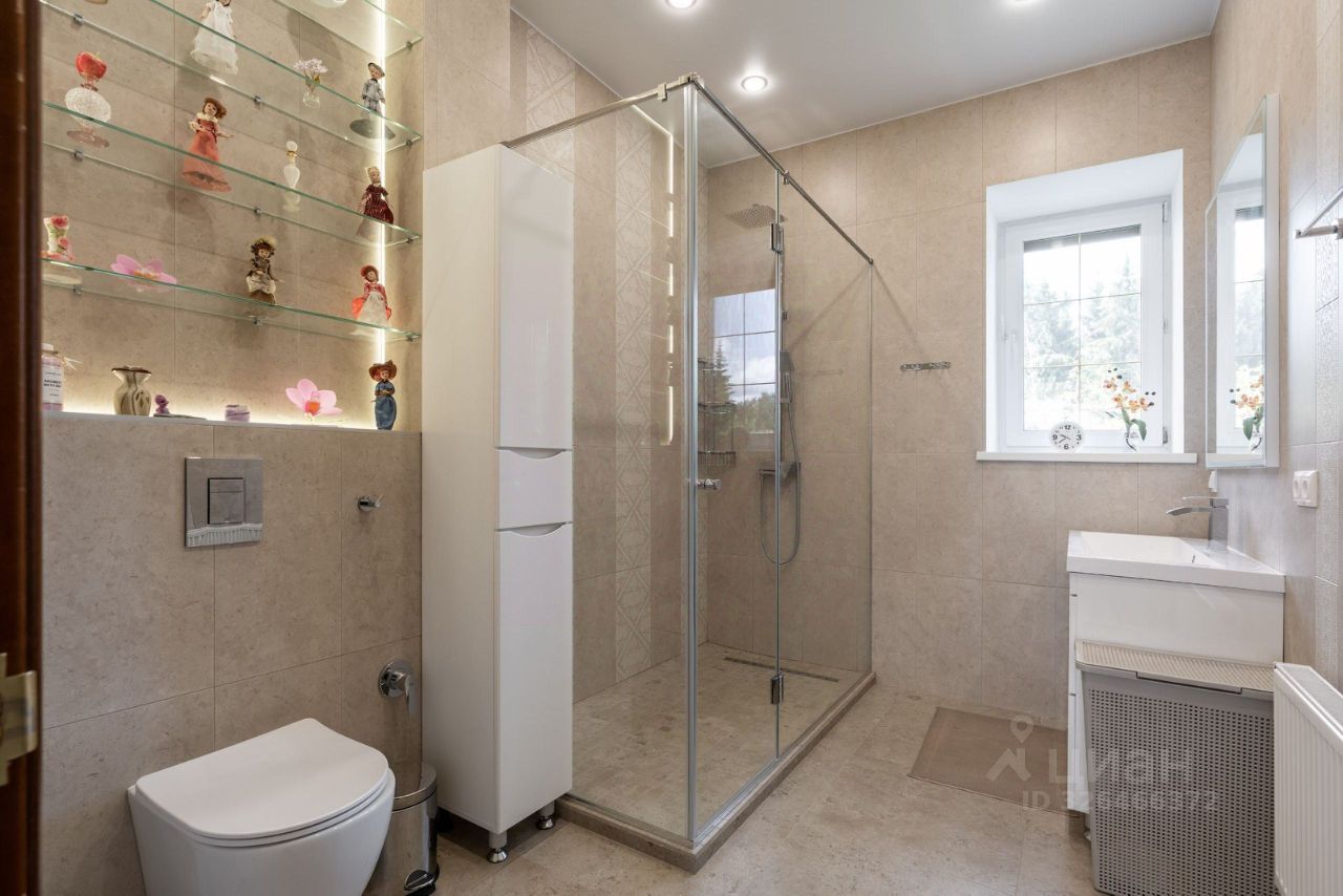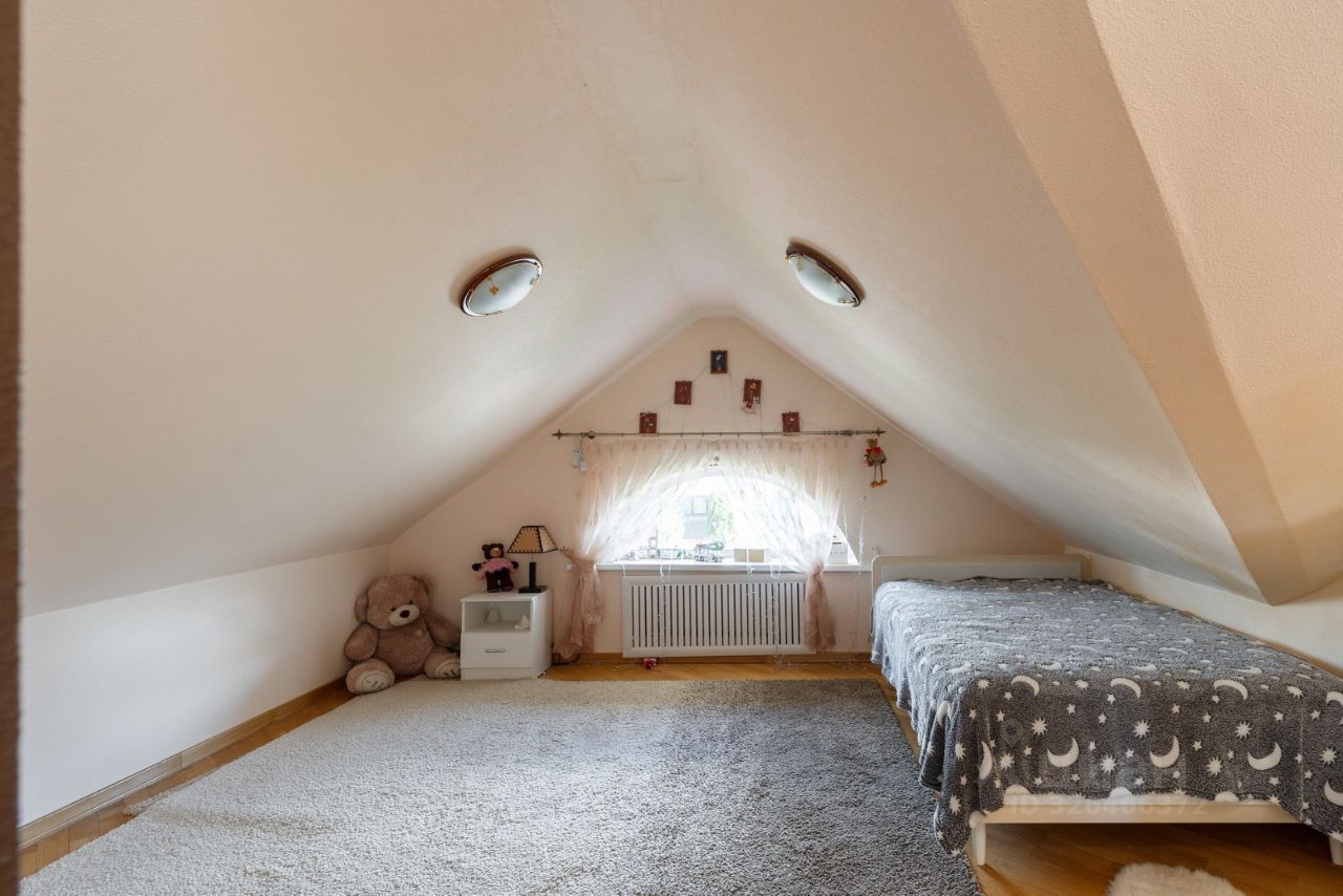 Дом монолитно-кирпичный трёхуровневый с функциональной планировкой: 1 этаж: просторная кухня-столовая, гостиная с камином, гостевая спальня, ванная комната, бойлерная. 2 этаж: хозяйская спальня 29 кв.м, гостевая спальня, кабинет (можно использовать как ещё одну спальню), ванная комната. Мансардный этаж, в котором расположены детская комната и зона отдыха. В отделке доме использованы качественные материалы, в комнатах дубовый паркет. Весь дом оборудован кондиционерами. Дорогая итальянская мебель остаётся в качестве бонуса новому собственнику.