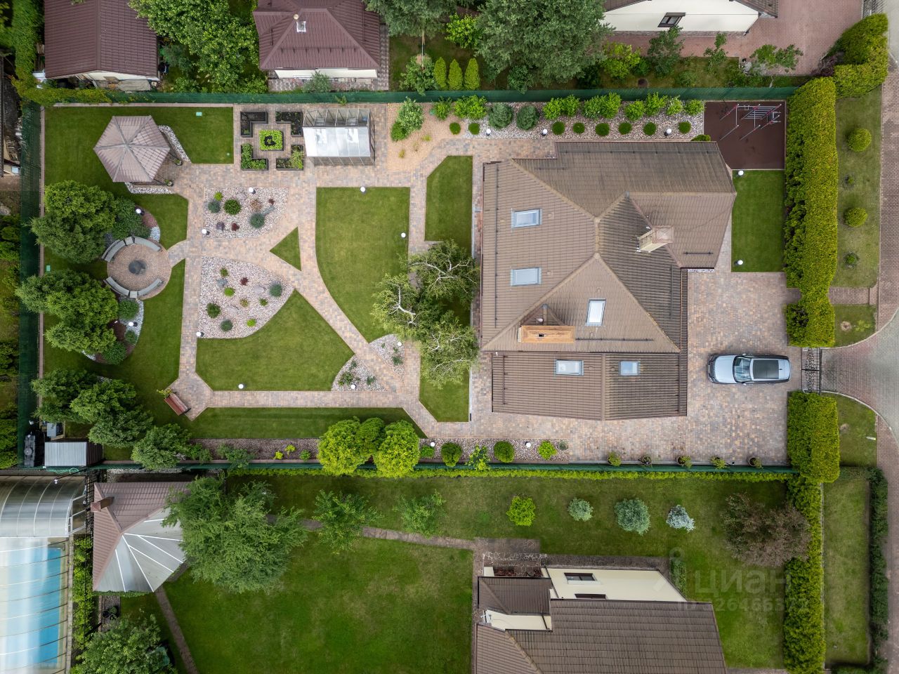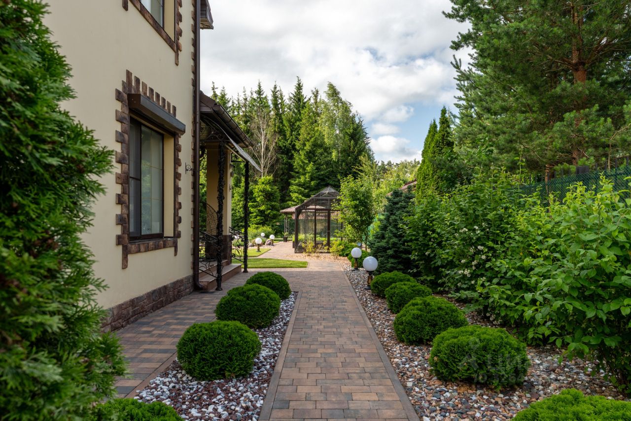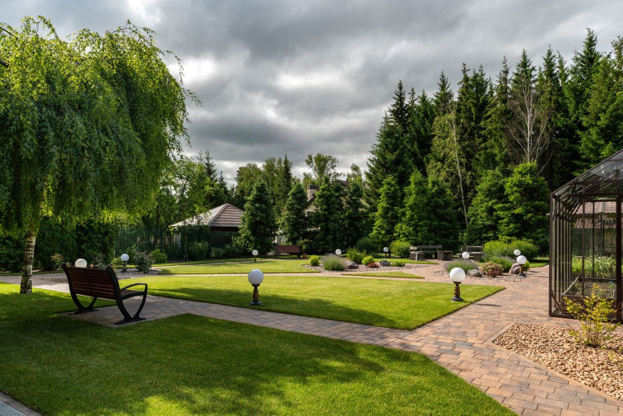 Вокруг дома выполнена отмостка с дренажной системой. Ровный облагороженный участок 12 соток, на котором проведены ландшафтные работы: участок выровнен, установлена автоматическая система автополива, вымощены дорожки, уличное освещение. Выполнено грамотное зонирование: прекрасный газон, живописные уголки с лесными деревьями, высажены плодовые деревья и кустарники. Для любителей овощей есть небольшой огород и теплица. Обустроена открытая зона отдыха с очагом, беседка. Также сделана зона воркаут со специальным покрытием.