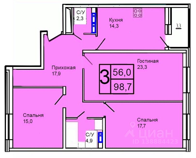 Общая площадь98,7 м2