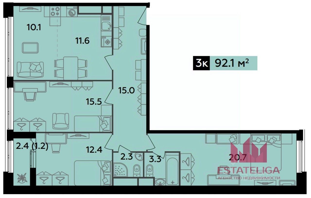 • Высокие потолки 3,6 м: ощущение свободы и простора в каждом уголке. • Планировка с 3-мя изолированными комнатами: создают комфорт и личное пространство для всех жителей.