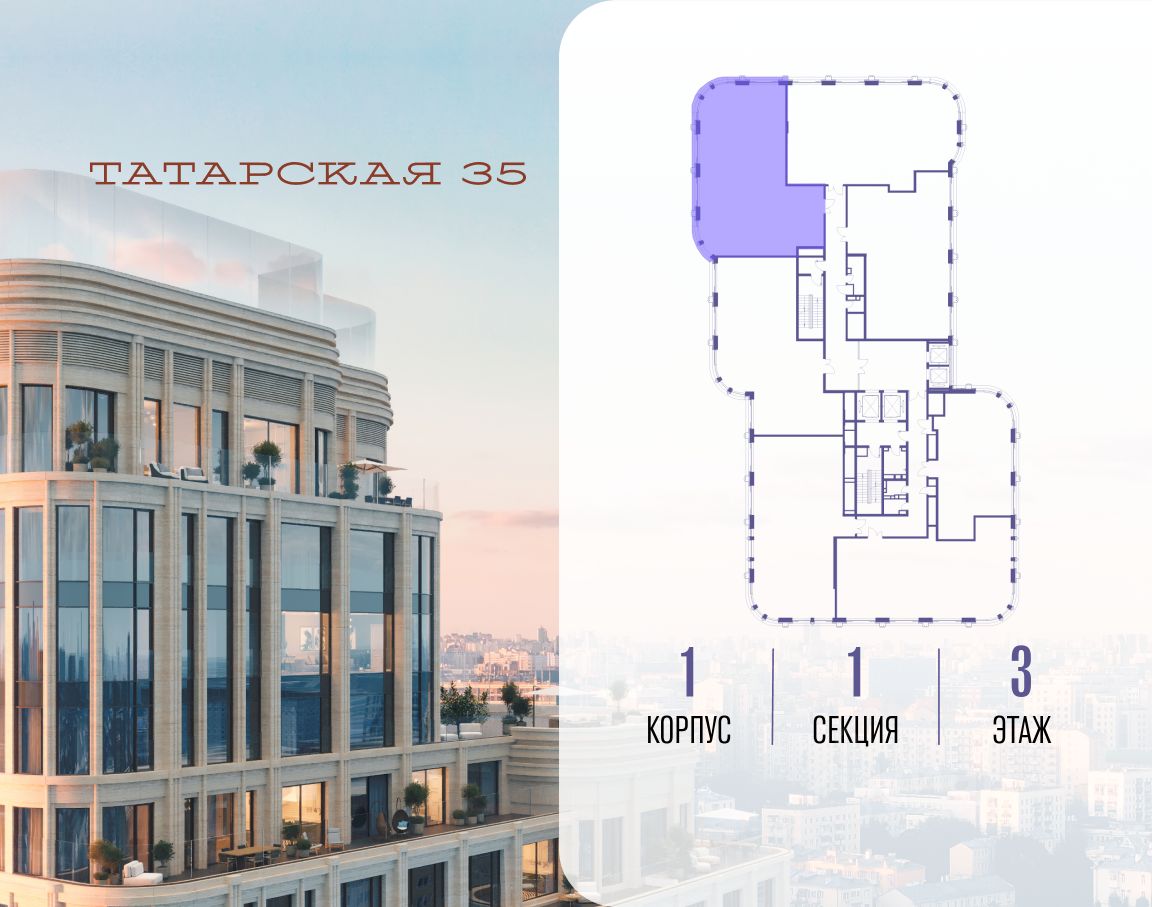 ТАТАРСКАЯ, 35 - новая архитектурная доминанта Замоскворечья, достопримечательность на фотопанорамах исторического центра Москвы. Элитный дом, созданный для тех, кто умеет смотреть далеко вперед, мыслить масштабно и воплощать собственный сценарий жизни.
