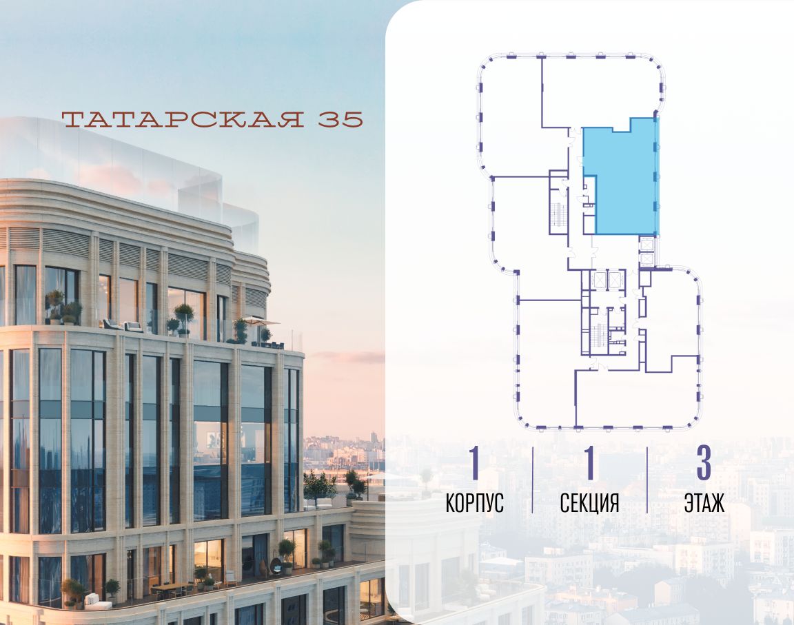 ТАТАРСКАЯ, 35 - новая архитектурная доминанта Замоскворечья, достопримечательность на фотопанорамах исторического центра Москвы. Элитный дом, созданный для тех, кто умеет смотреть далеко вперед, мыслить масштабно и воплощать собственный сценарий жизни.