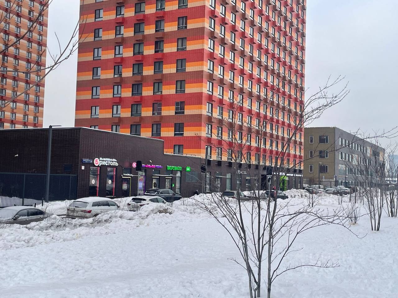 Внутри комплекса на первых этажах находятся школа, детский сад, магазины, кафе, салоны красоты и другие коммерческие объекты. Имеется подземная и гостевая парковки. Закрытый двор без машин с оборудованными детскими и спортивными площадками.