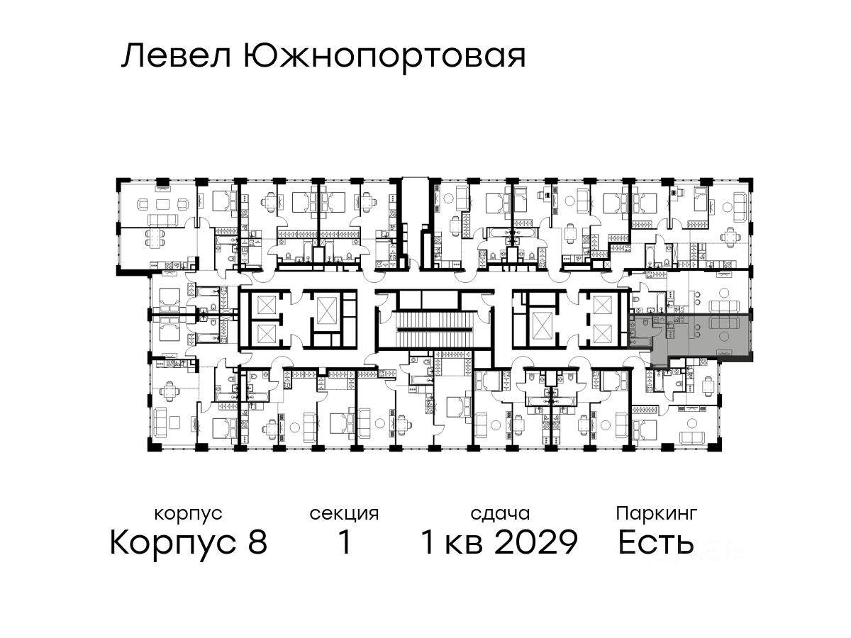 В северной части района Печатники продается студия площадью 29.50 кв.м без отделки. Квартира расположена на 23 этаже 49-этажного корпуса 8 в жилом комплексе комфорт-класса Левел Южнопортовая (компания Level Group/Левел групп).