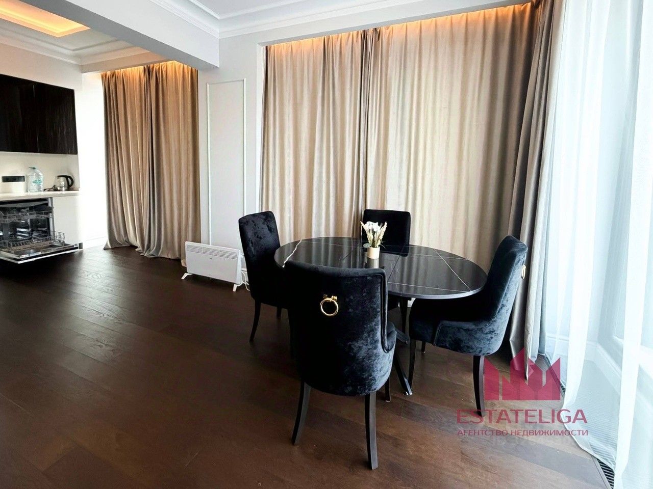 Комфортная планировка: мастер-спальня с вместительной гардеробной и сан. узлом, в котором есть и ванная, и душ. Кухня-гостиная с продуманным зонированием пространства. Также предусмотрены гостевой сан узел и постирочная (есть сушильная машина).