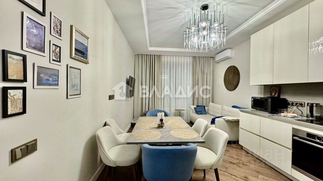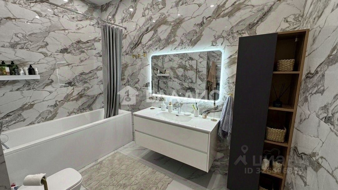 Дизайнерский ремонт позволит вам сразу заселиться и наслаждаться комфортом. Просторная жилая площадь — 27,5 кв. м, а кухня занимает 20 кв. м, что создаёт отличные возможности для обустройства. Два совмещённых санузла обеспечивают удобство для всех членов семьи.