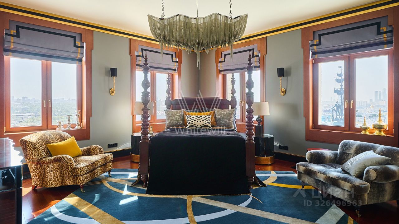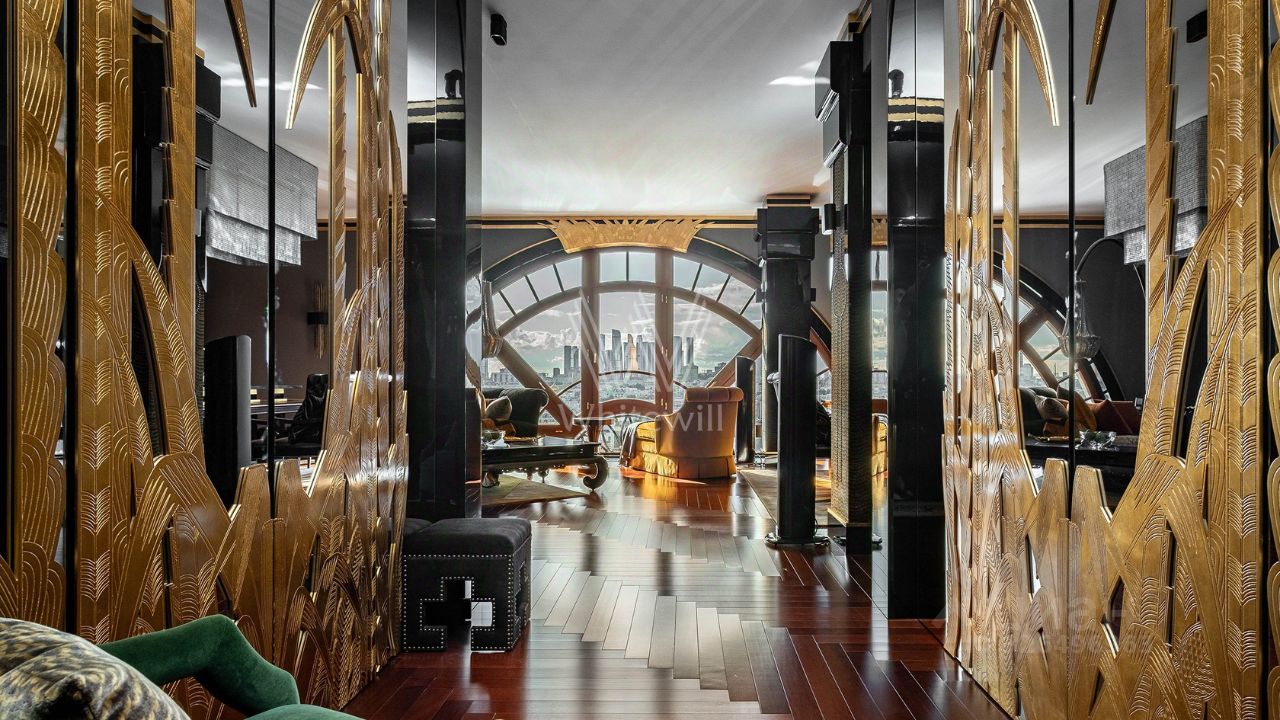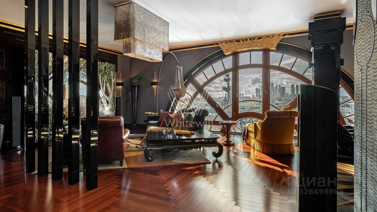 Отделка: Квартира с авторским ремонтом общей площадью 184 м² расположена на 14-м этаже с панорамными видами на всю Москву