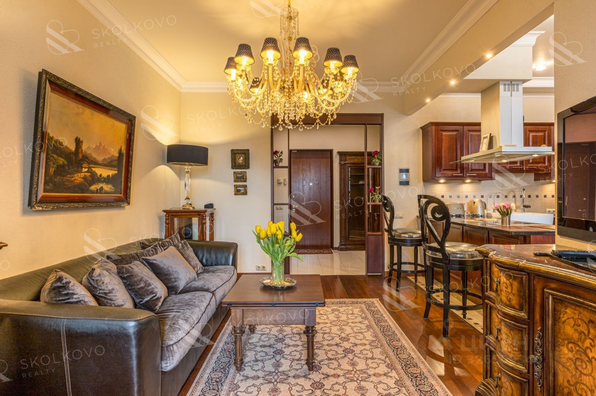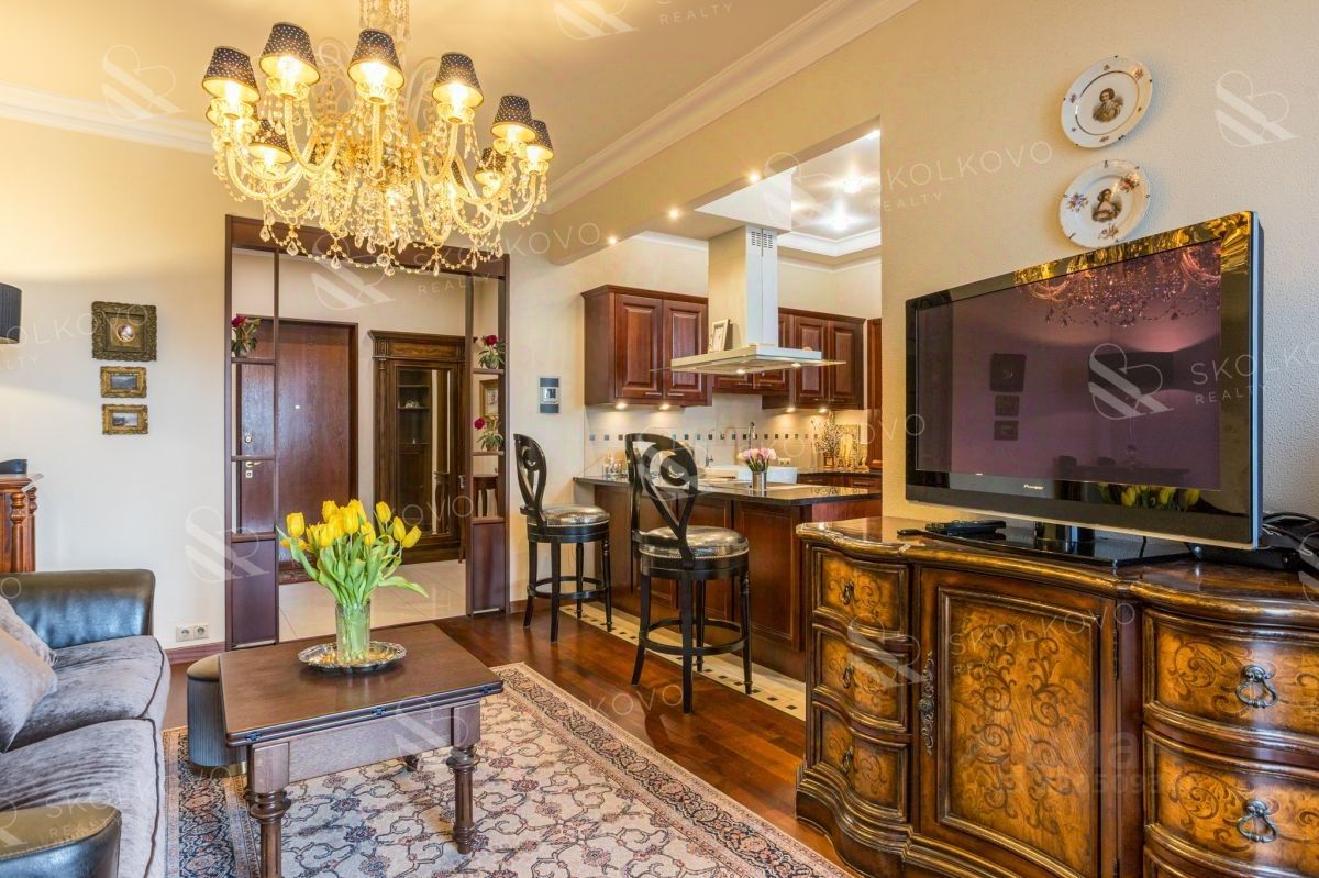 Эта большая, светлая и функциональная квартира сочетает в себе современные технологии и элементы изысканного дизайна. Просторная гостиная объединена с кухней, создавая гармоничное пространство для семейных ужинов и встреч с друзьями.