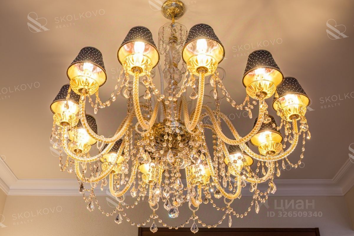 Люксовые хрустальные люстры итальянских брендов Pataviumart в гостиных и спальне создают атмосферу роскоши. Дополняют их стильные настольные лампы от Chiantese и бра от Versace в ванной.