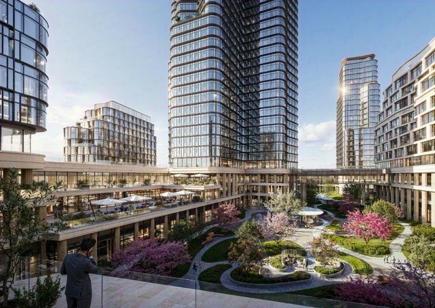 Территория комфорта и приватности Всё нужное рядом: - Современный образовательный центр со школой и детским садом - для ваших детей, - Фитнес-центр с бассейном - для релакса и борьбы со стрессом, - Ресторанная улица: кафе, рестораны, летние террасы - для деловых обедов и семейных ужинов, - Пекарня и минимаркет в доме - для ежедневных покупок, - Сквер у дома - для неспешных прогулок и спокойного отдыха, - Никаких такси на улице. Машина заберет вас прямо в подземном паркинге вашего корпуса.
