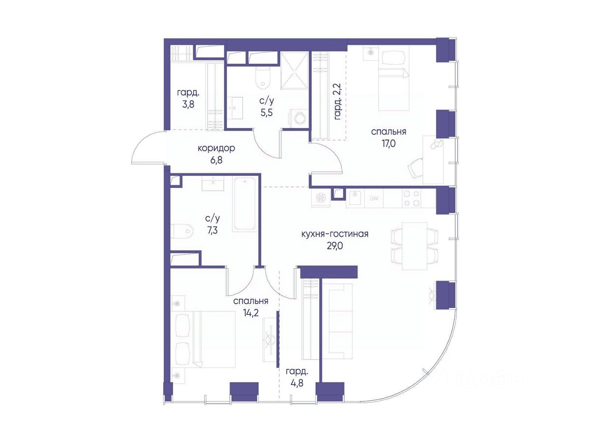 Территория комфорта и приватности Всё нужное рядом: - Современный образовательный центр со школой и детским садом - для ваших детей, - Фитнес-центр с бассейном - для релакса и борьбы со стрессом, - Ресторанная улица: кафе, рестораны, летние террасы - для деловых обедов и семейных ужинов, - Пекарня и минимаркет в доме - для ежедневных покупок, - Сквер у дома - для неспешных прогулок и спокойного отдыха, - Никаких такси на улице. Машина заберет вас прямо в подземном паркинге вашего корпуса.