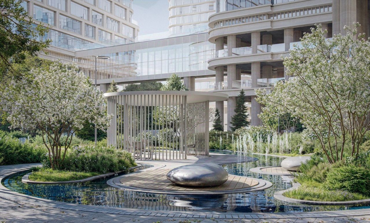 Территория комфорта и приватности Всё нужное рядом: - Современный образовательный центр со школой и детским садом - для ваших детей, - Фитнес-центр с бассейном - для релакса и борьбы со стрессом, - Ресторанная улица: кафе, рестораны, летние террасы - для деловых обедов и семейных ужинов, - Пекарня и минимаркет в доме - для ежедневных покупок, - Сквер у дома - для неспешных прогулок и спокойного отдыха, - Никаких такси на улице. Машина заберет вас прямо в подземном паркинге вашего корпуса.
