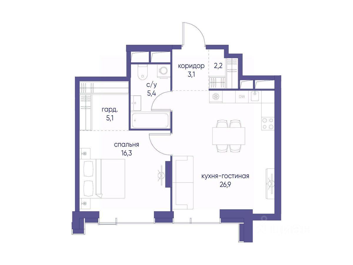 В престижном районе Пресня, на перекрестке делового и исторического центров Москвы, продается однокомнатная квартира площадью 59.00 кв. м без отделки. Квартира находится на 23 этаже 48-этажного дома, в новом элитном жилом комплексе ''Начало'' от девелопера ''Донстрой''. Реализация проекта запланирована на 1 квартал 2030 года.