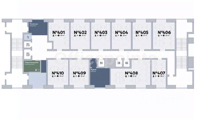 - Готовый офис с дизайнерской отделкой на 12 рабочих мест, смешанная планировка (переговорные, кухня, мягкие зоны отдыха).
