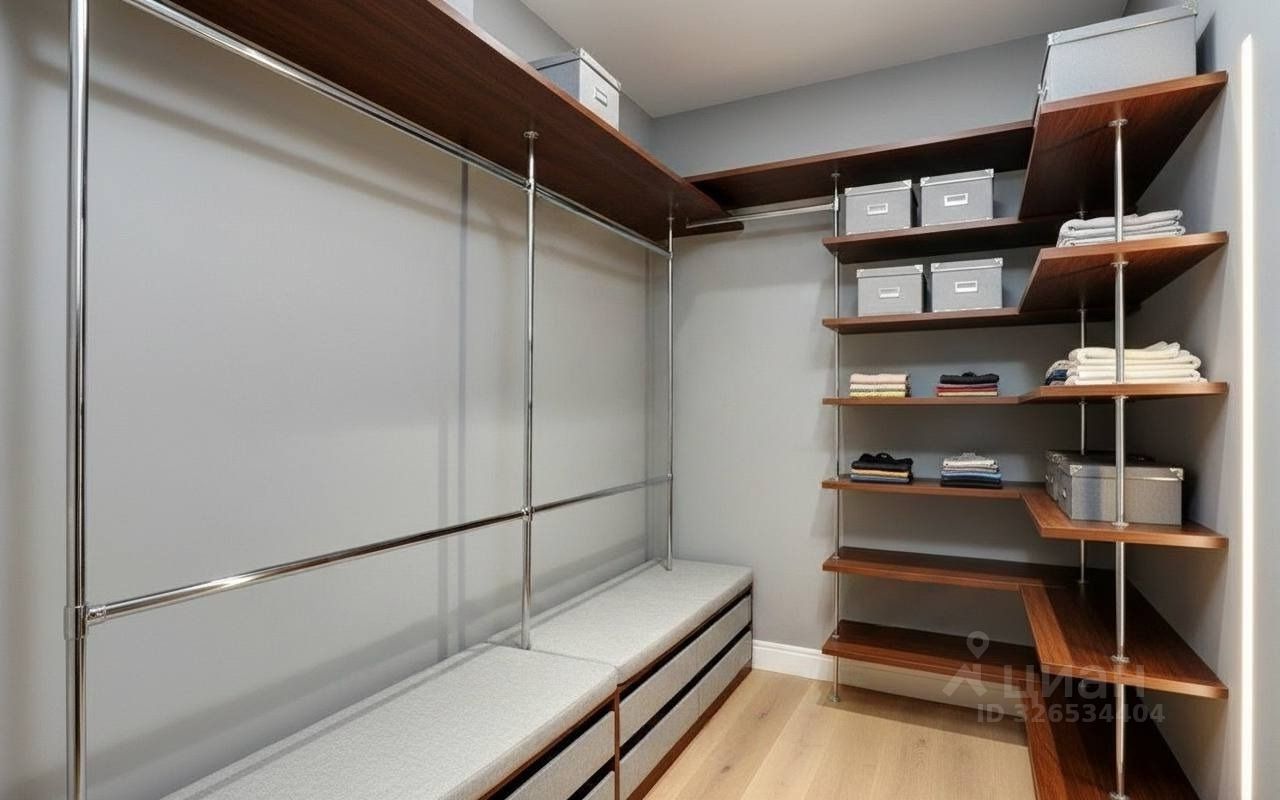 Планировка квартиры: кухня, гостиная, две спальни, две гардеробные, два совмещенных санузла.