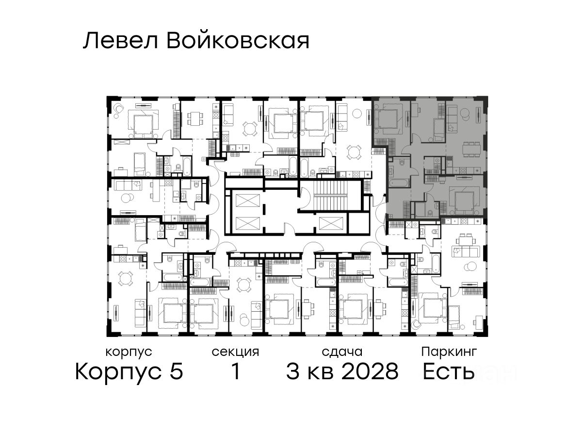 Внутренняя инфраструктура На территории жилого комплекса предусмотрены коммерческие помещения: кафе, ресторан, пекарня и другие сервисы откроются на первых этажах корпусов. Для жителей будет доступен отапливаемый подземный паркинг на 244 машино-места с доступом с любого этажа на лифте. На территории паркинга будет расположено 125 кладовых помещений для хранения сезонного инвентаря.